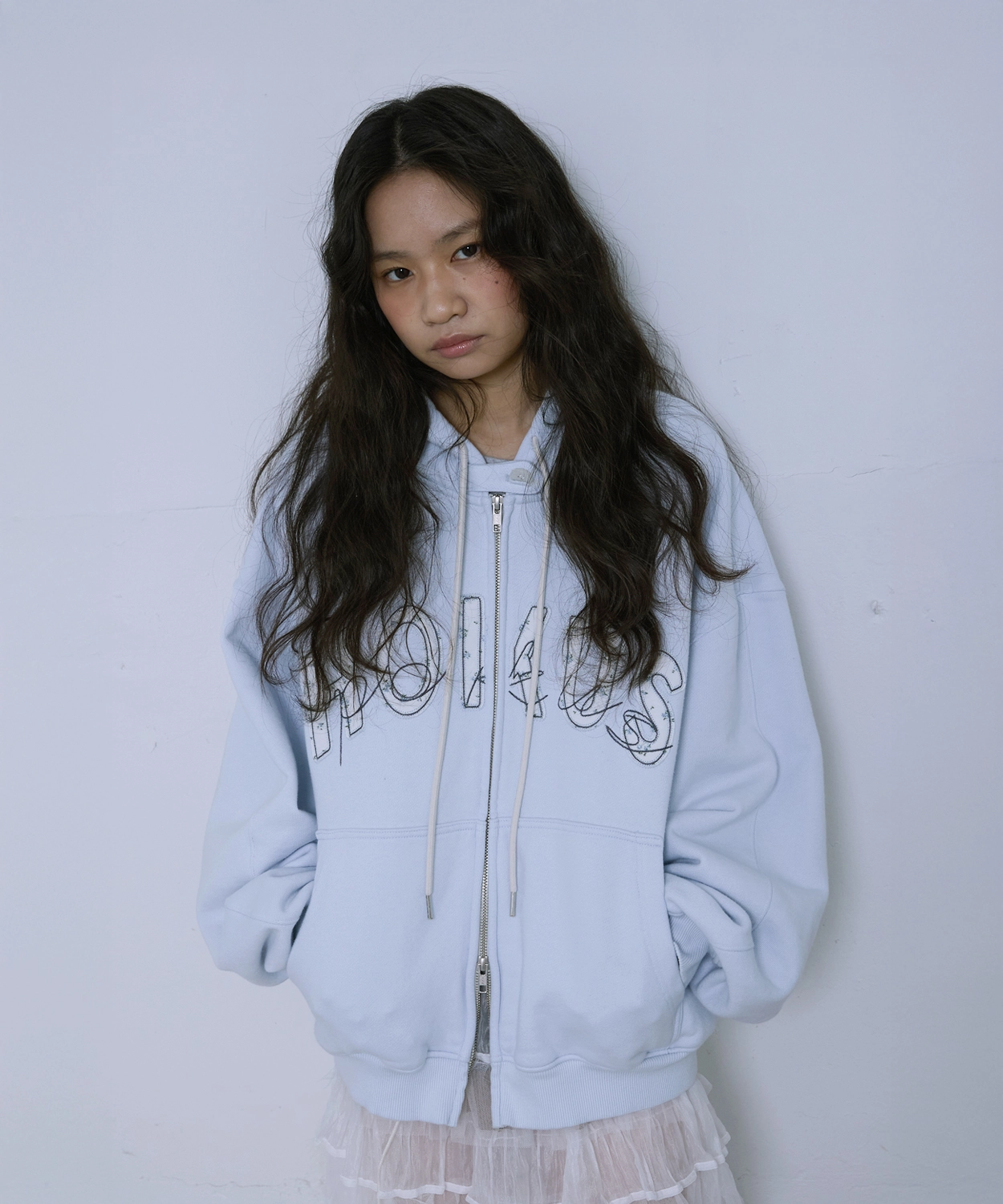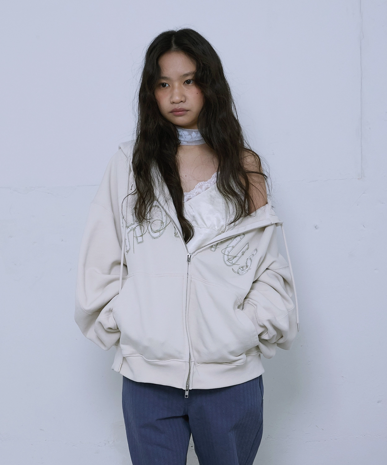 Crochet Hoodie Zip-up_White