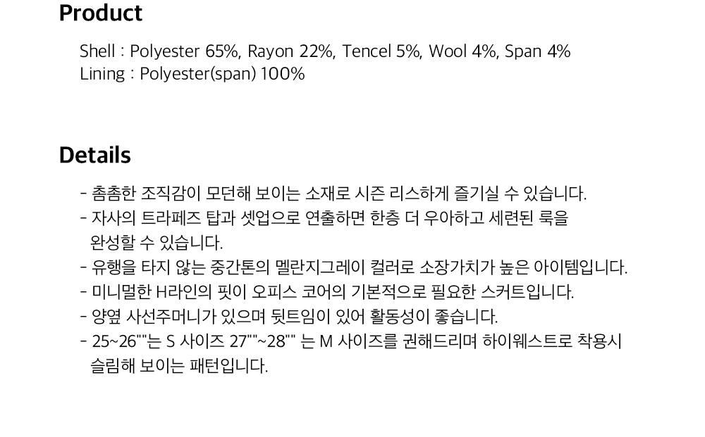 본 제품에 표시되어 있는 섬유 혼용률, 치수, 세탁 방법을 착용 전에 반드시 확인하기 바랍니다.