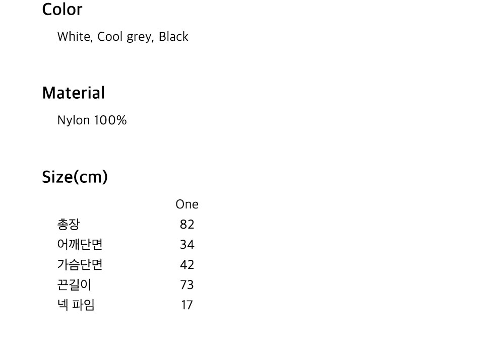 본 제품에 표시되어 있는 섬유 혼용률, 치수, 세탁 방법을 착용 전에 반드시 확인하기 바랍니다.