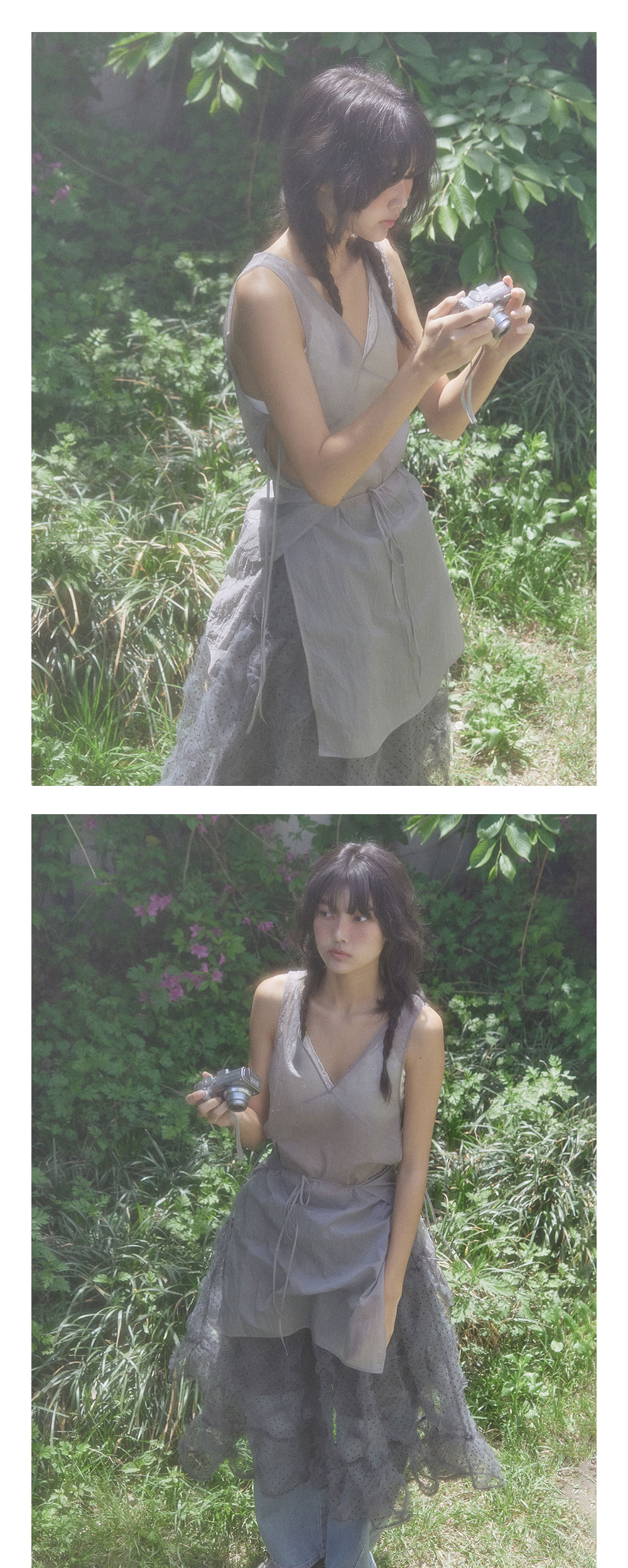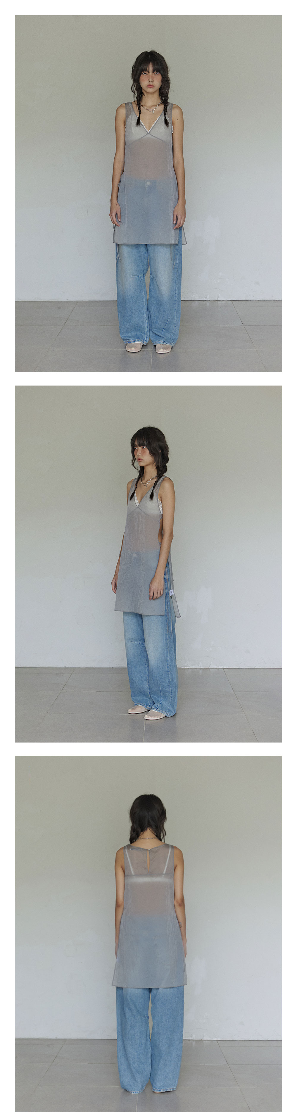 Sheer layered onepiece / Cool grey