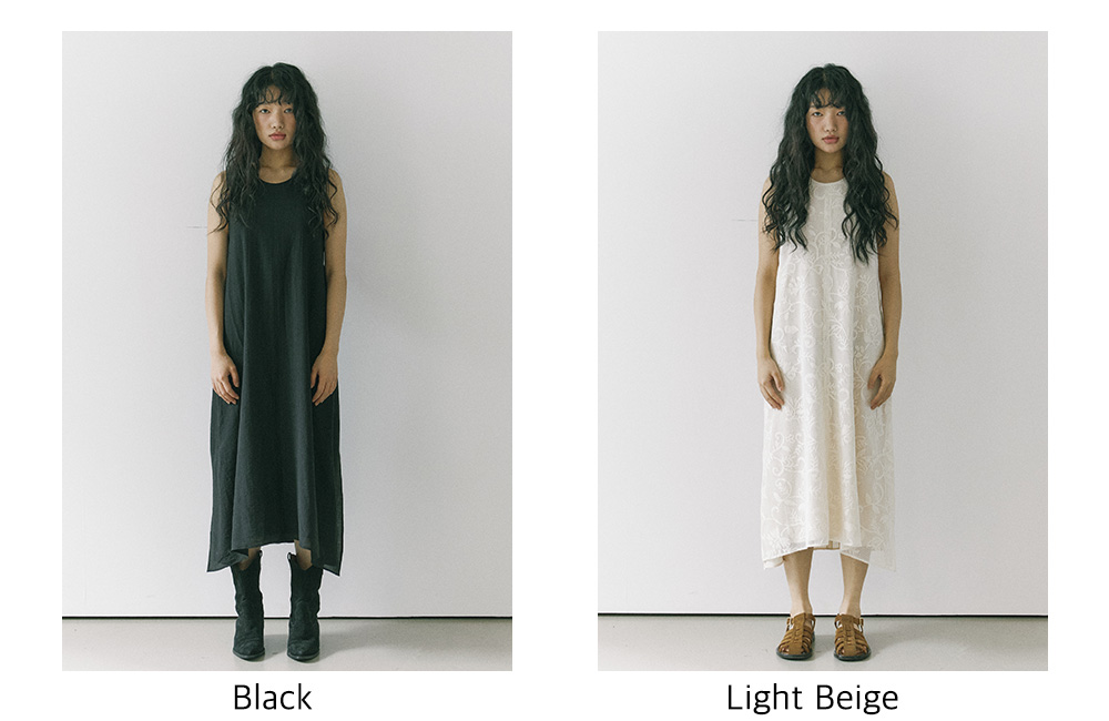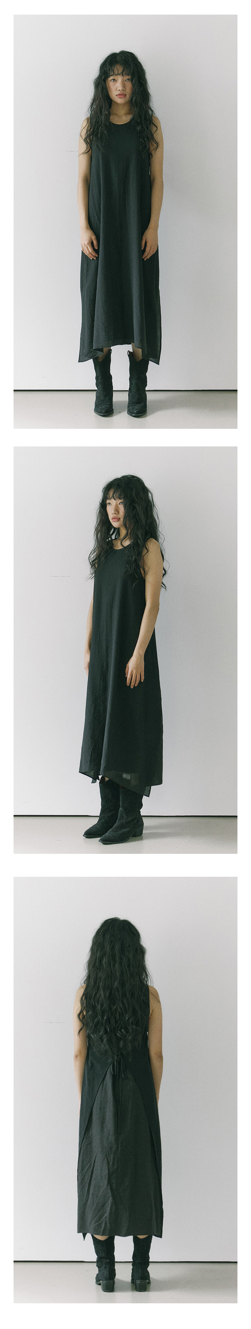 Layered linen long dress / Black