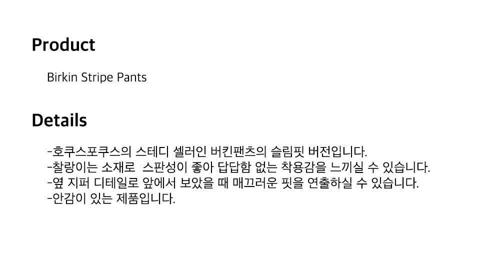 본 제품에 표시되어 있는 섬유 혼용률, 치수, 세탁 방법을 착용 전에 반드시 확인하기 바랍니다.