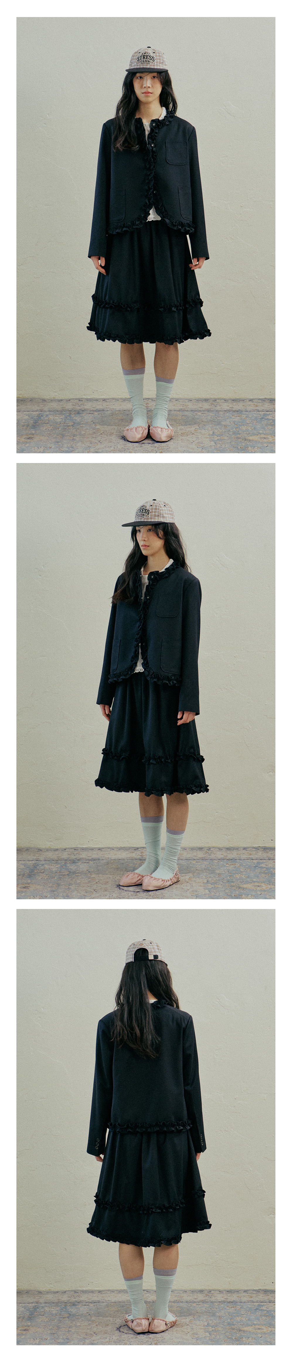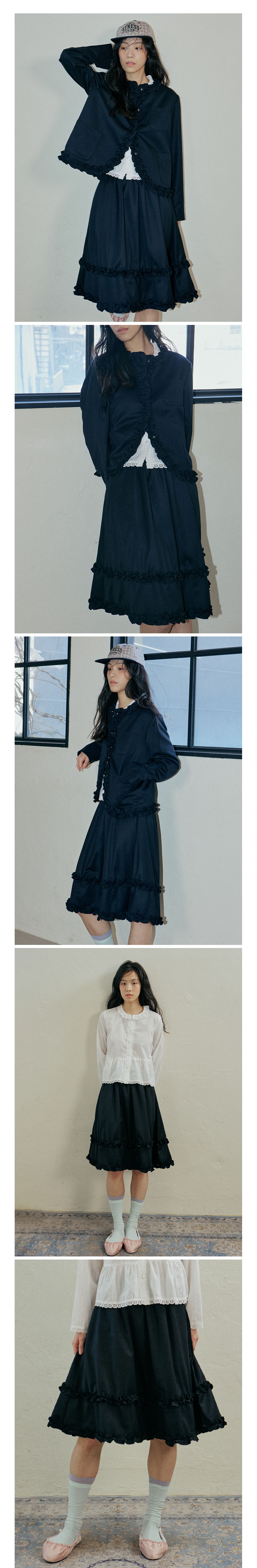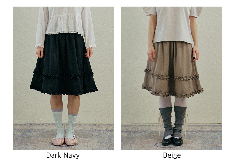 Gentle Frill Banding Skirt_Dark Navy