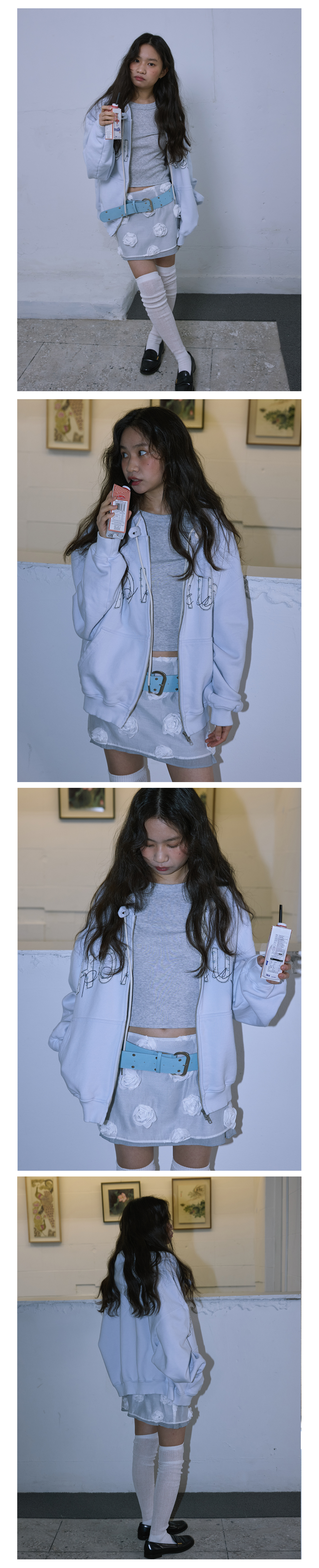 - 로즈 모양 디테일이 전체에 더해진 스커트입니다.
