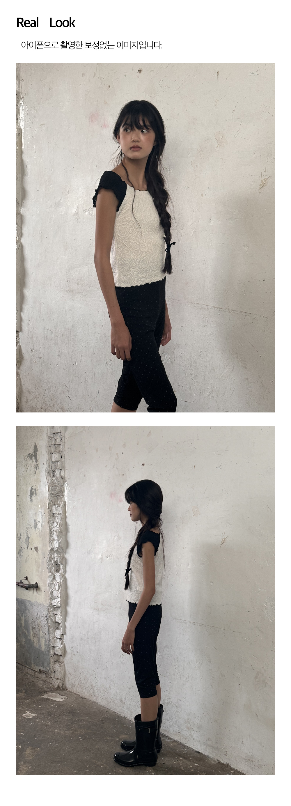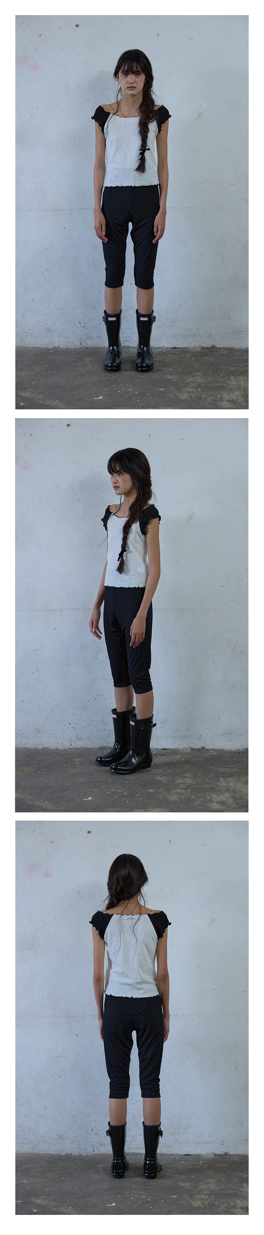 - 도트 패턴이 더해진 카프리 팬츠입니다.