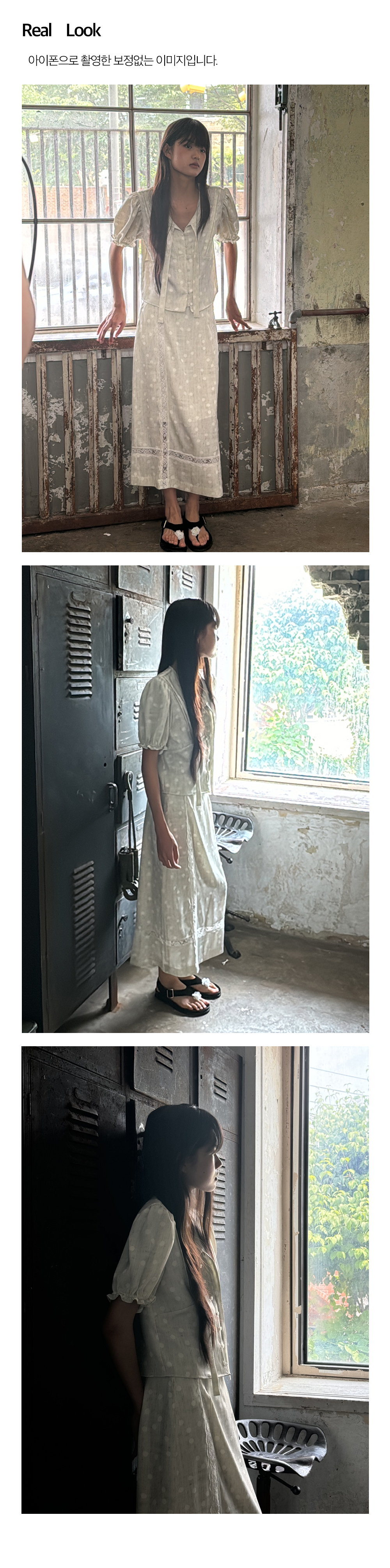 - 자연스러운 구김 가공이 피부에 달라 붙지 않아 쾌적한 착용감이 특징입니다.