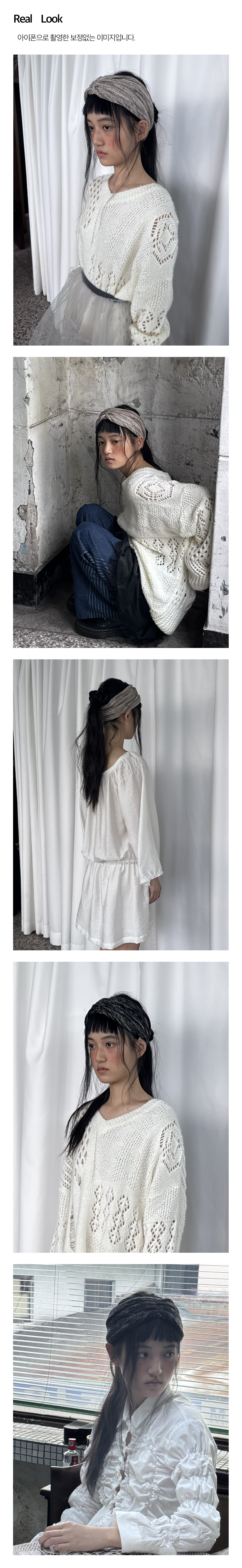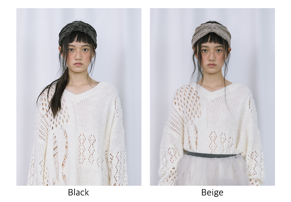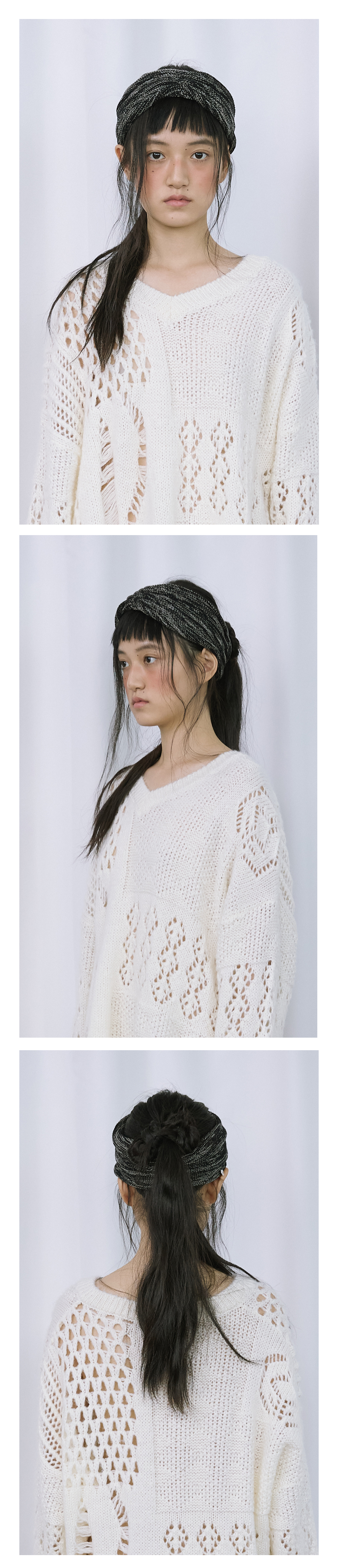 -다양한 니트 짜임이 믹스된 유니크한 헤어 밴드 디자인
