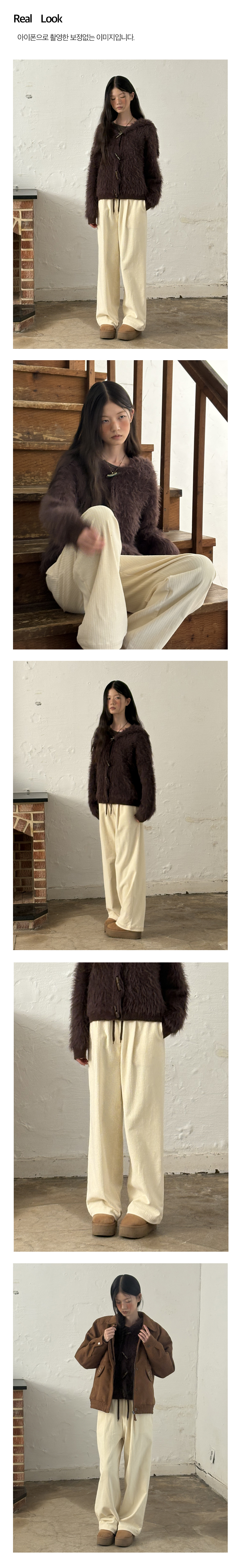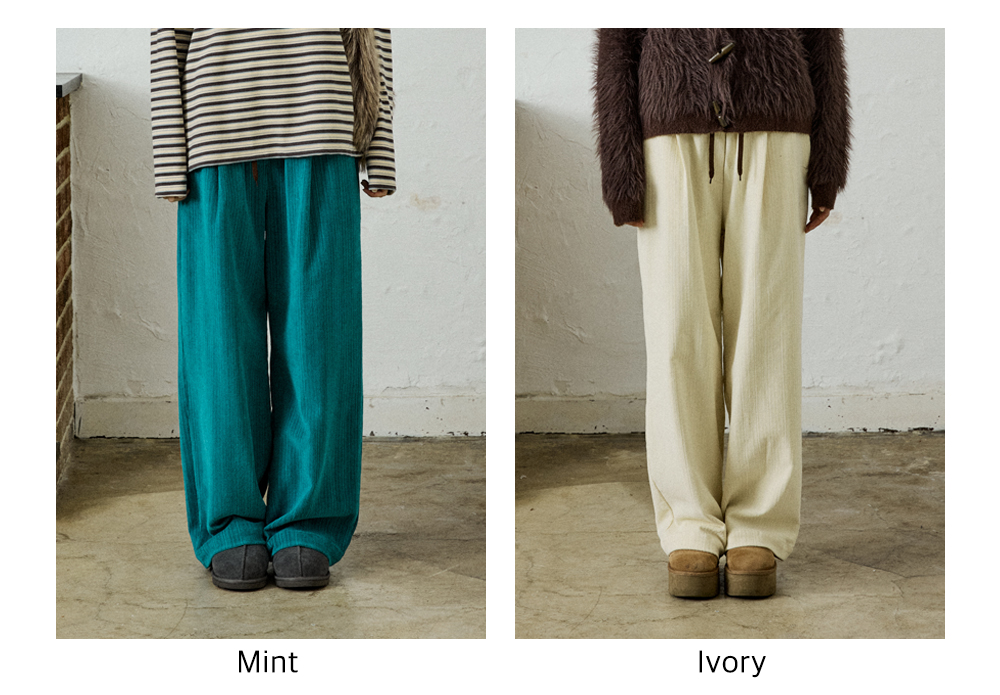 - 폭닥하고 따뜻한 코듀로이 소재로 제작된 와이드 핏 팬츠입니다.