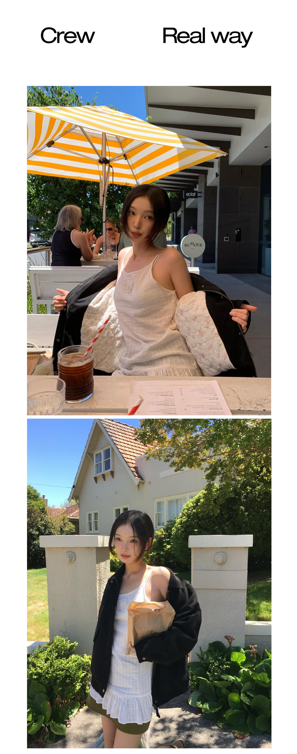 - 레이스 라벨은 앞면으로 입어 포인트 있게, 또는 뒤집어 깔끔하게 연출할 수 있어 스타일에 따라 양면으로 활용이 가능합니다.