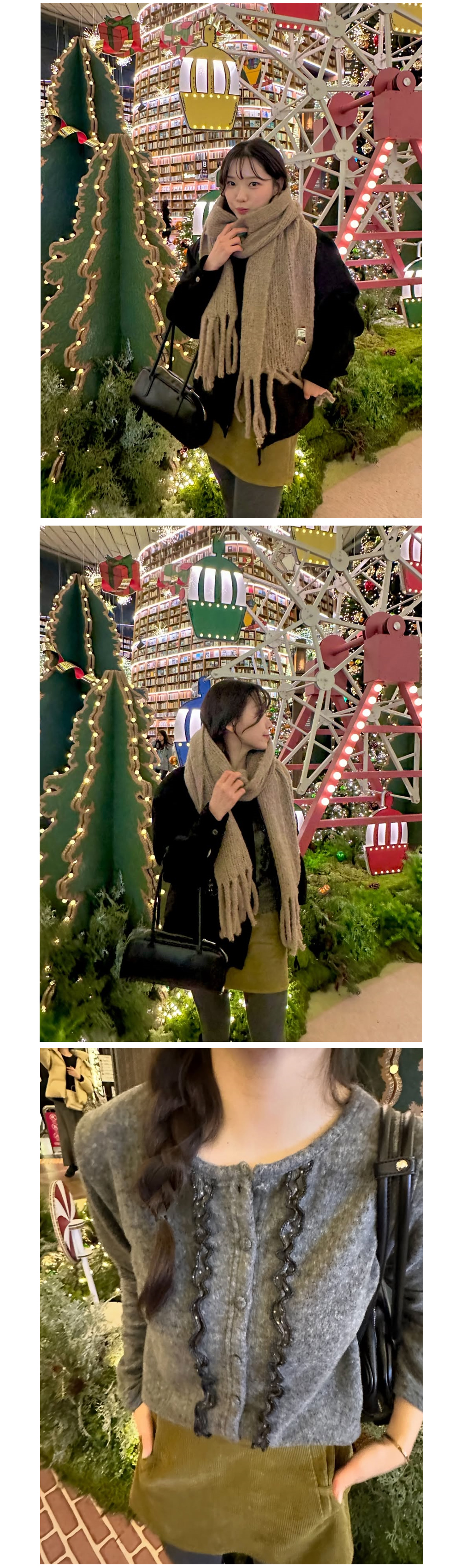- 두께감 있는 소재로 겨울 시즌에도 따뜻하게 착용 가능하며, 자연스러운 질감 덕분에 고급스러운 실루엣을 완성합니다.