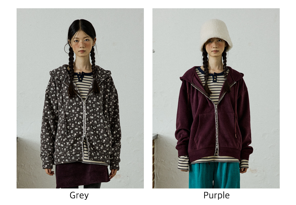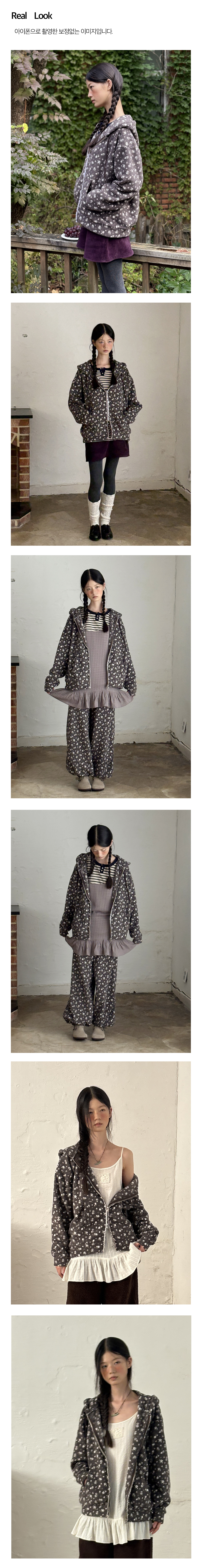 - 몽글몽글한 플리스 질감이 느껴지는 플라워 패턴 집업입니다.