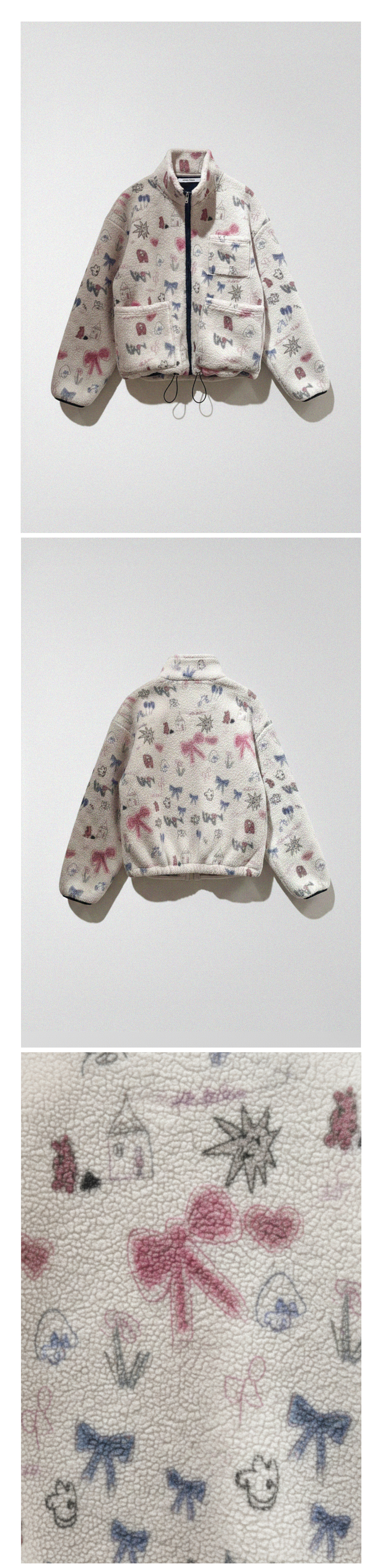 - 같은 시리즈의 플리스 스커트와 함께 매치하면 패턴의 매력이 더욱 살아나는 셋업 스타일로 연출할 수 있습니다.