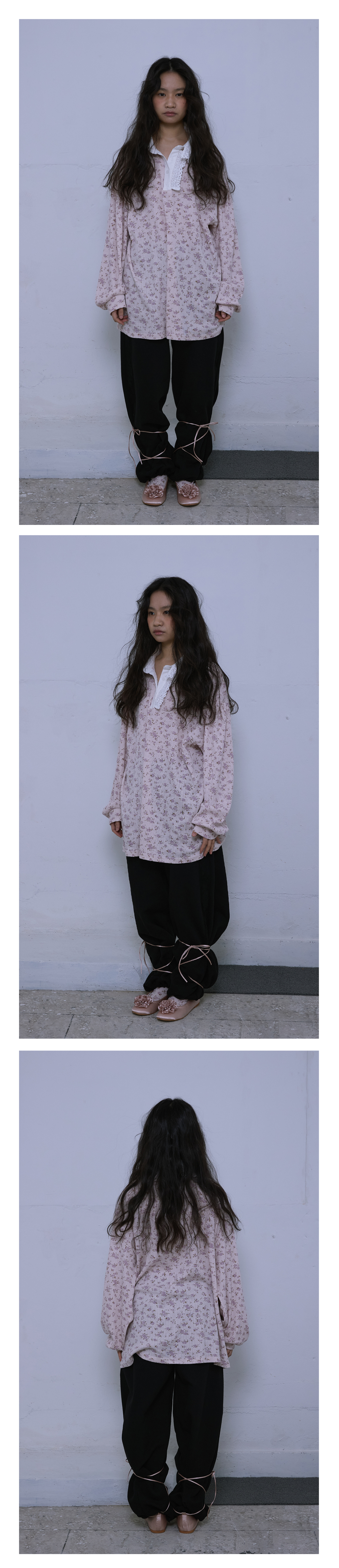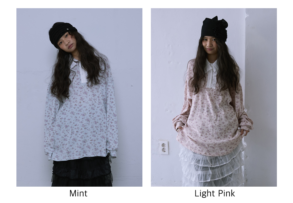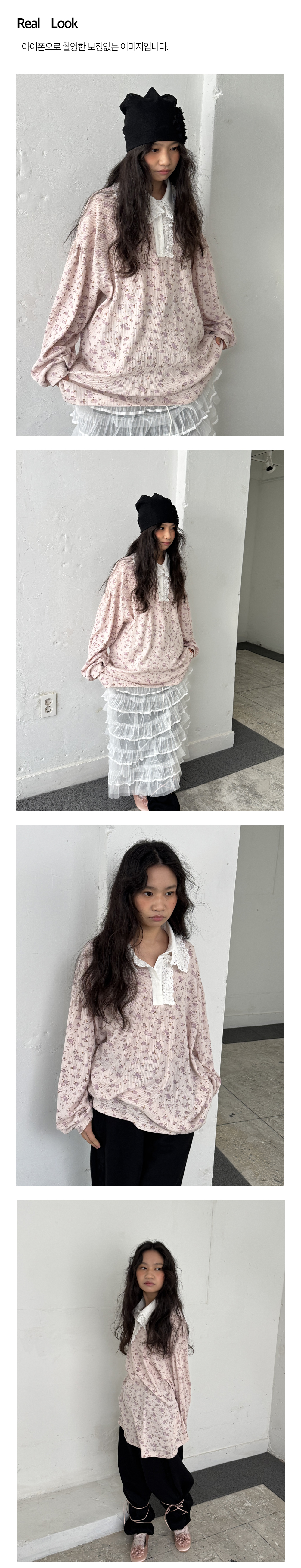 - 잔꽃무늬 패턴의 골지 소재로 제작되어, 여유 있는 루즈핏으로 편안하게 착용할 수 있습니다.