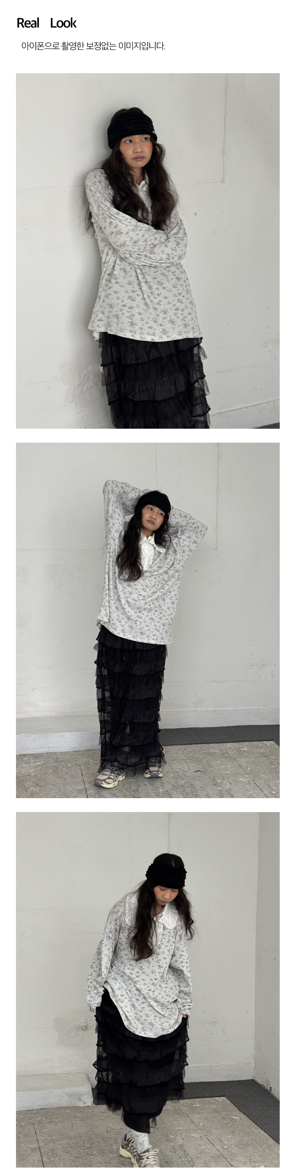 - 잔꽃무늬 패턴의 골지 소재로 제작되어, 여유 있는 루즈핏으로 편안하게 착용할 수 있습니다.