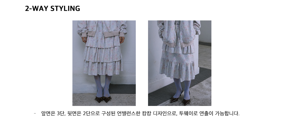 - 앞면은 3단, 뒷면은 2단으로 구성된 언밸런스한 캉캉 디자인으로, 투웨이로 연출이 가능합니다.