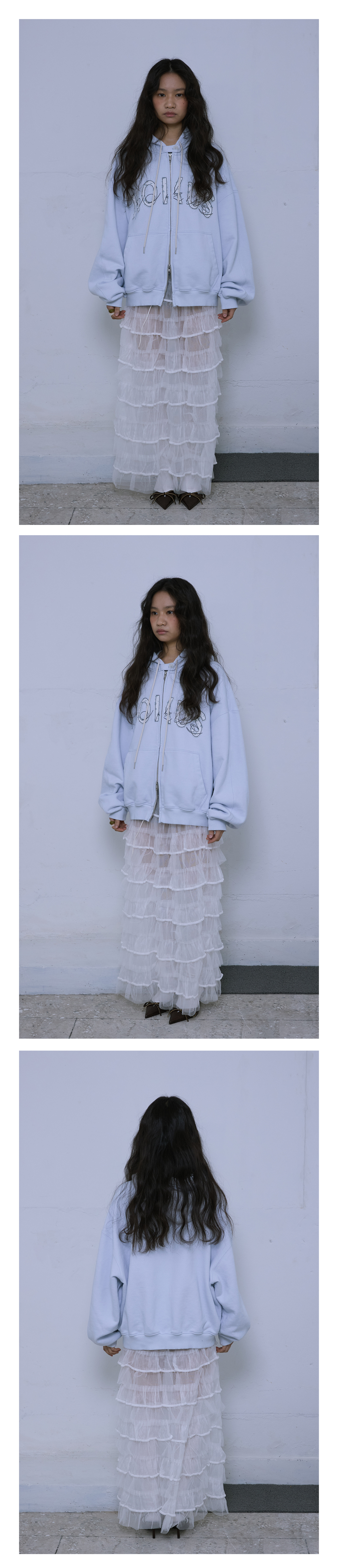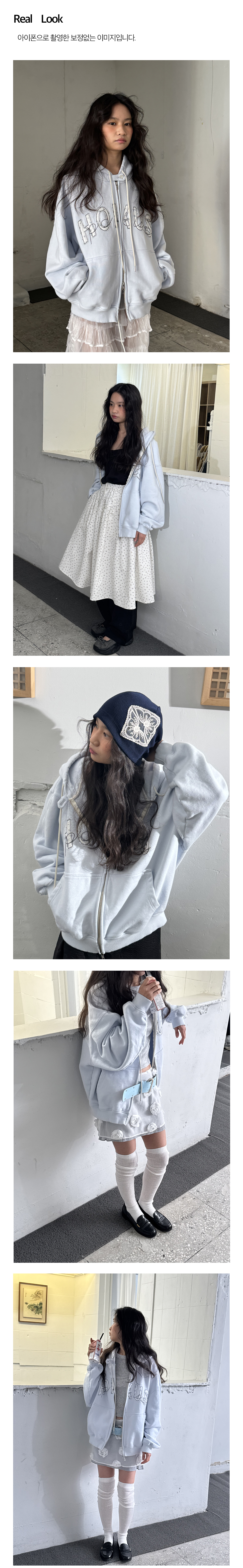 Vintage Floral Logo Hoodie Zip-up_Baby blue