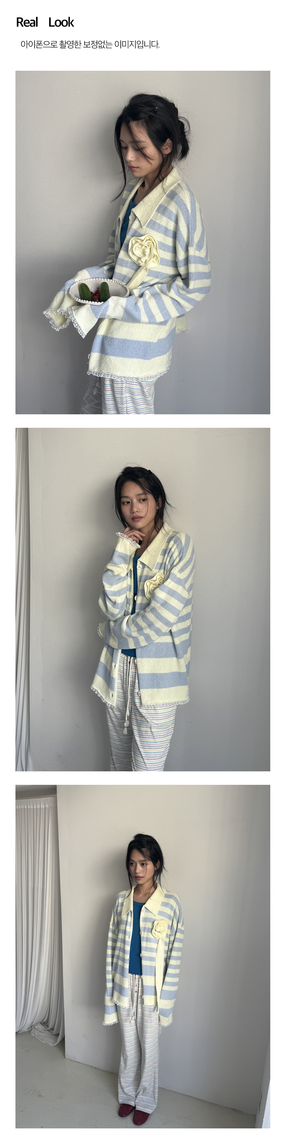- 밑단과 소매 끝에는 레이스 디테일을 더해 은은하고 사랑스러운 분위기를 완성했습니다.