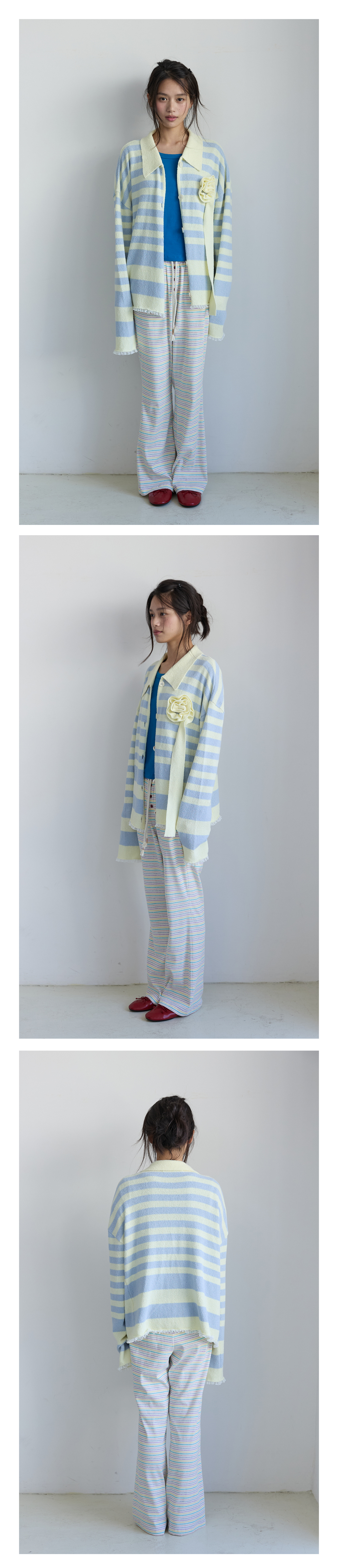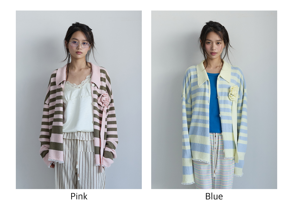 - 두 가지 컬러가 믹스된 스트라이프 패턴이 더해져 귀엽고 경쾌한 분위기를 연출합니다.